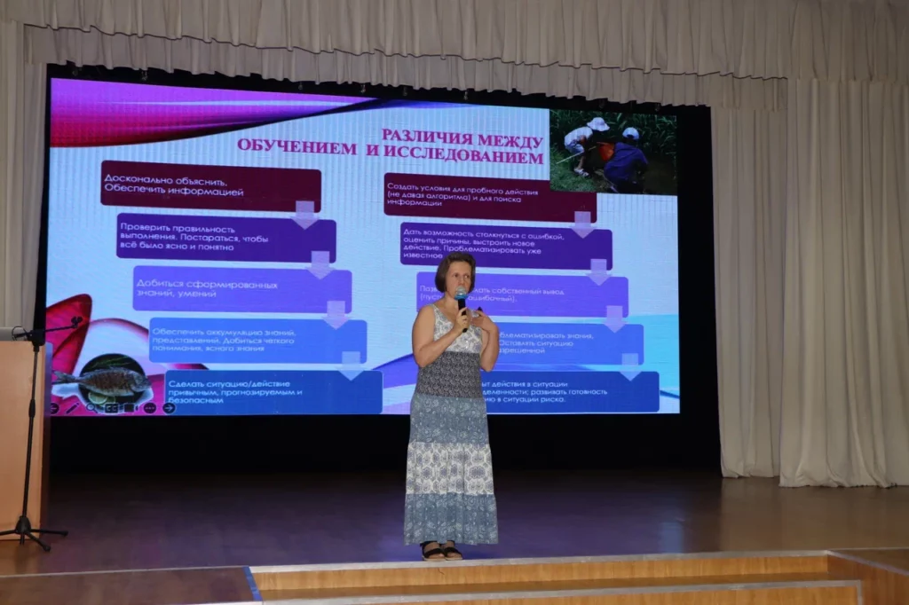 С 20 по 22 августа 2025 педагоги школы приняли участи в обучающем семинаре «Развитие исследовательской деятельности учащихся: от дошкольников до старшеклассников», который был проведён Алексеем Сергеевичем Обуховым (председатель жюри конкурса «Я — исследователь», член орг комитета конкурса им. В.И. Вернадского) и Екатериной Вячеславовной Трифоновой (методист конкурса «Я -исследователь, руководитель секции «Живая природа»).
