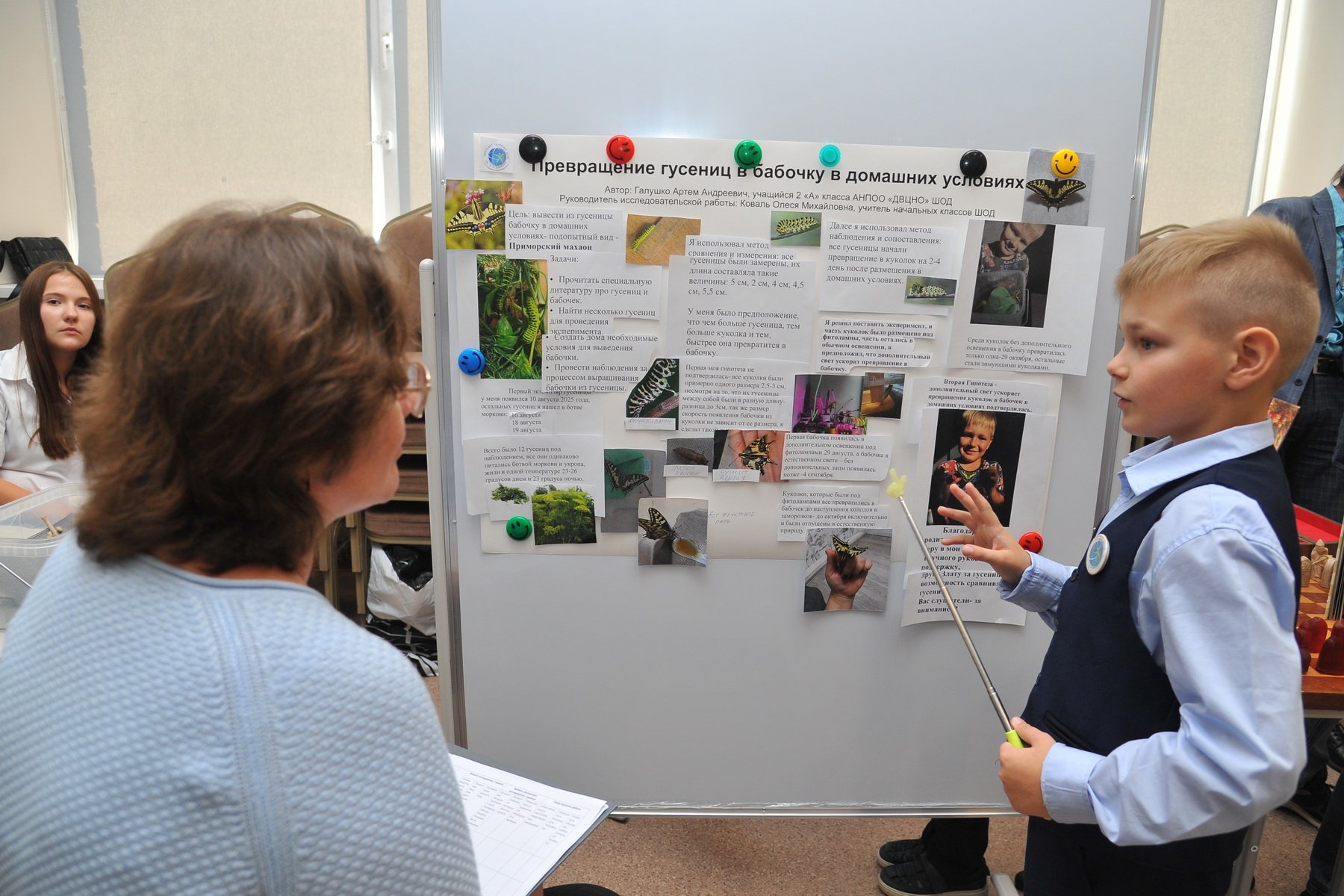 II место — ученик 2А класса Галушко Артём, тема «Превращение гусеницы в бабочку в домашних условиях» (руководитель Коваль О.М.)