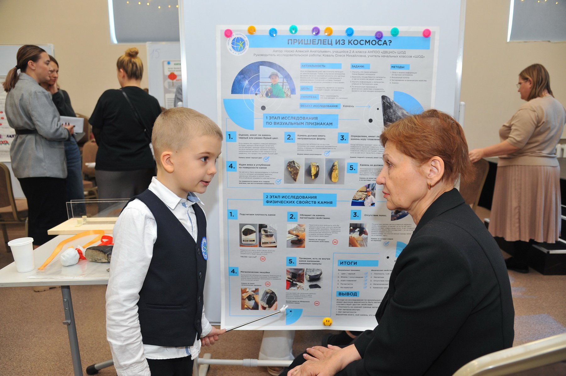 I место — ученик 2А класса Носко Алексей, тема «Пришелец из космоса? (Исследование камня на признаки метеорита» (руководитель Коваль О.М.)