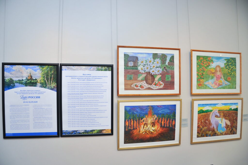 20 марта в Приморской государственной картинной галерее открылась выставка картин педагогов и учащихся Художественной школы и Изостудии «Акварелька» Школы для одарённых детей им. Н.Н. Дубинина «Душа России».