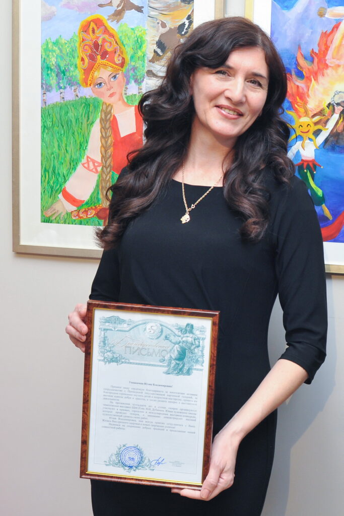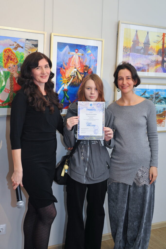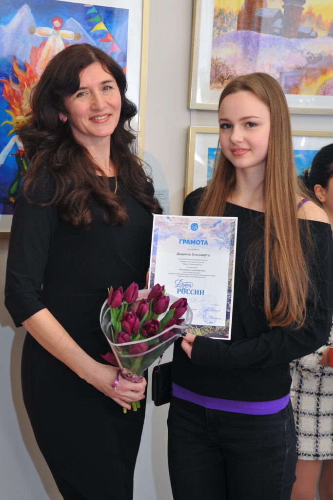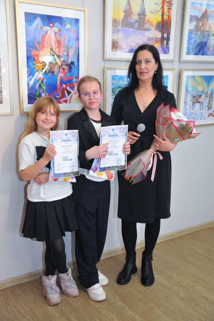 Открыла выставку директор Приморской государственной картинной галереи Алёна Алексеевна Даценко. Алёна Алексеевна подчеркнула значимость темы выставки и многогранное раскрытие ее в представленных работах, а также вручила благодарственные письма нашим педагогам — вдохновителям.